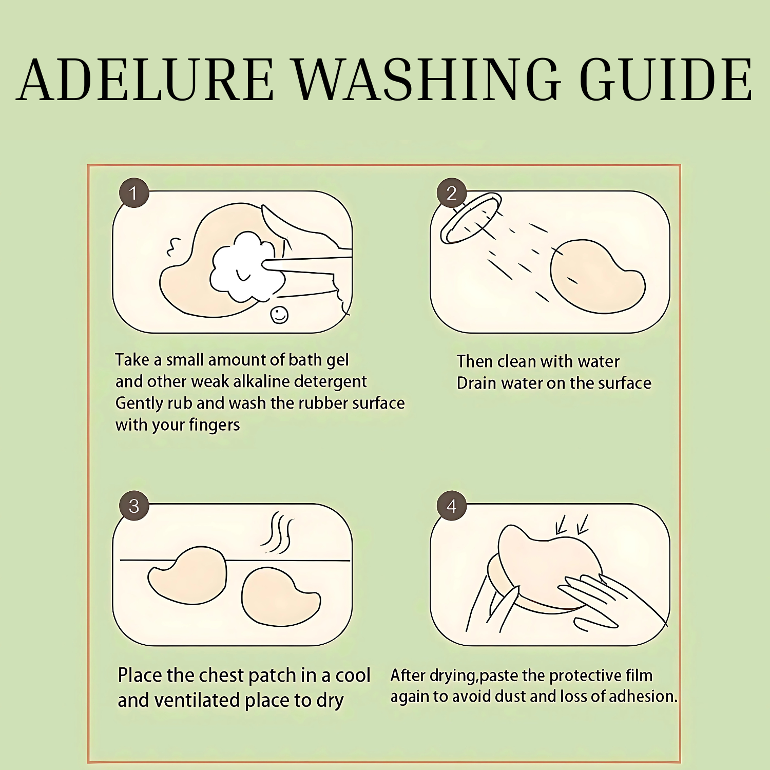 Using soap and water, clean and rinse the sticky part and let it dry. Keep the plastic film on to stop dust from sticking to it.